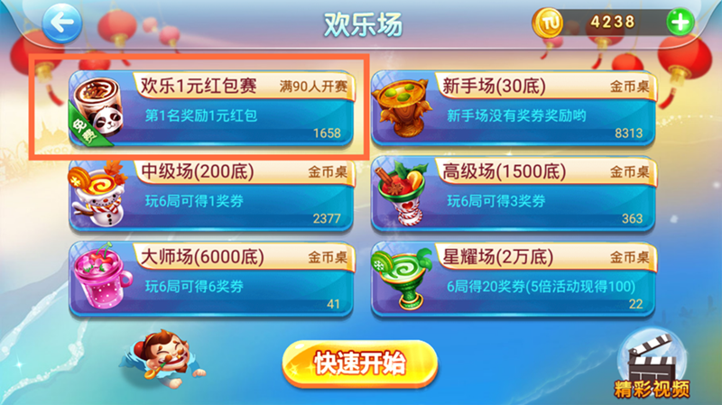 《途游斗地主》有4种模式,分别是经典场、欢乐场、癞子场和二人场。